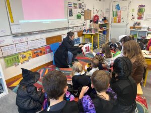 • 📖 Lecture : découverte de l’album “There’s a Wolf in Your Book” après un petit brain break ;
